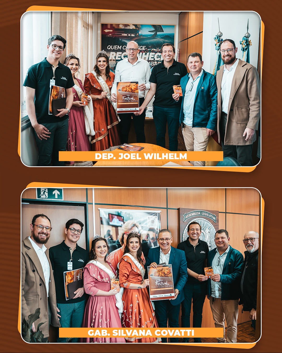 Durante a visita à Assembleia Legislativa e ao Palácio Piratini, foi entregue pessoalmente o convite do evento aos deputados estaduais e secretários do Governo do Estado, reforçando o orgulho e a importância do festival para o município e para toda a região.