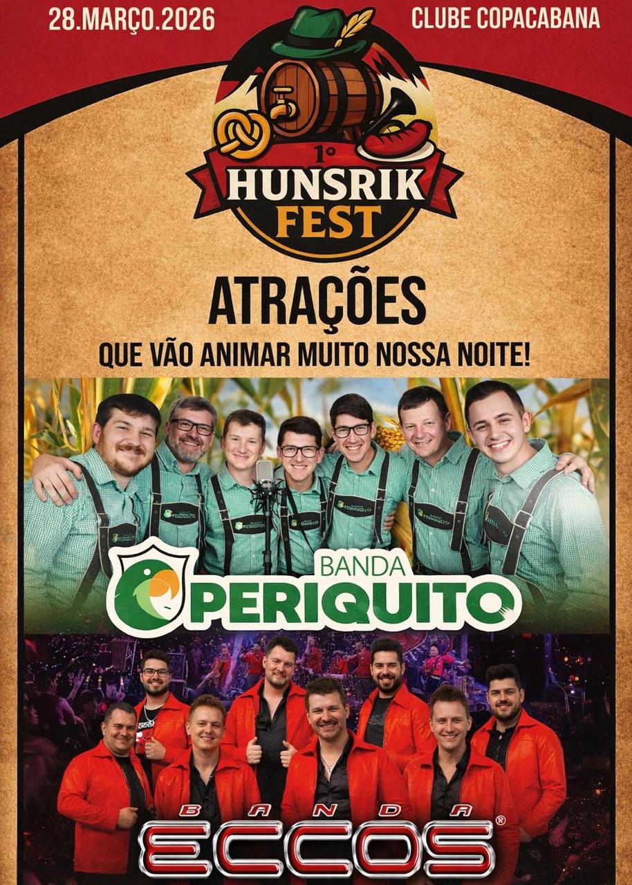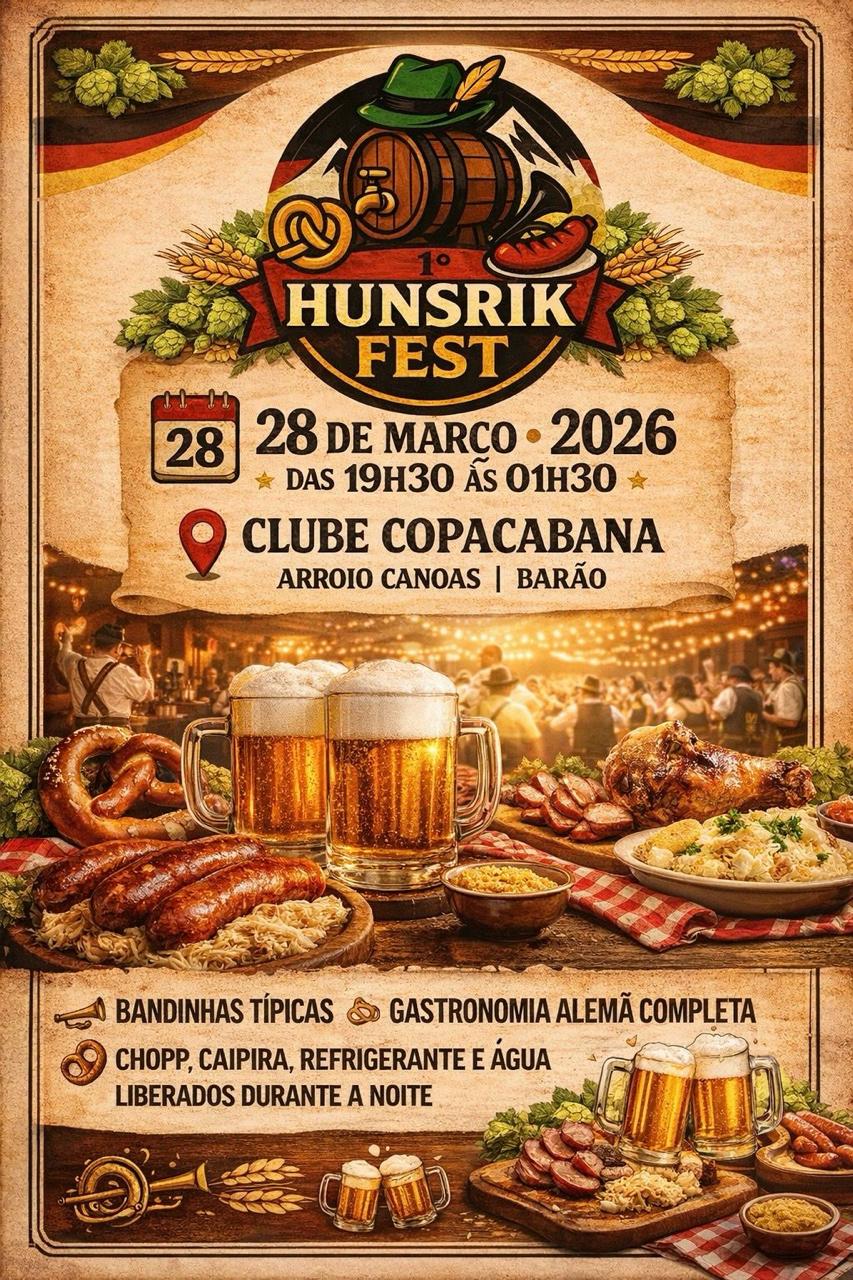 A programação da 1ª Hunsrik Fest, que acontece neste sábado (28), em Arroio Canoas, inclui um formato que combina tradição e experiência completa para o público. O evento será realizado no Esporte Clube Copacabana, com início às 19h30.