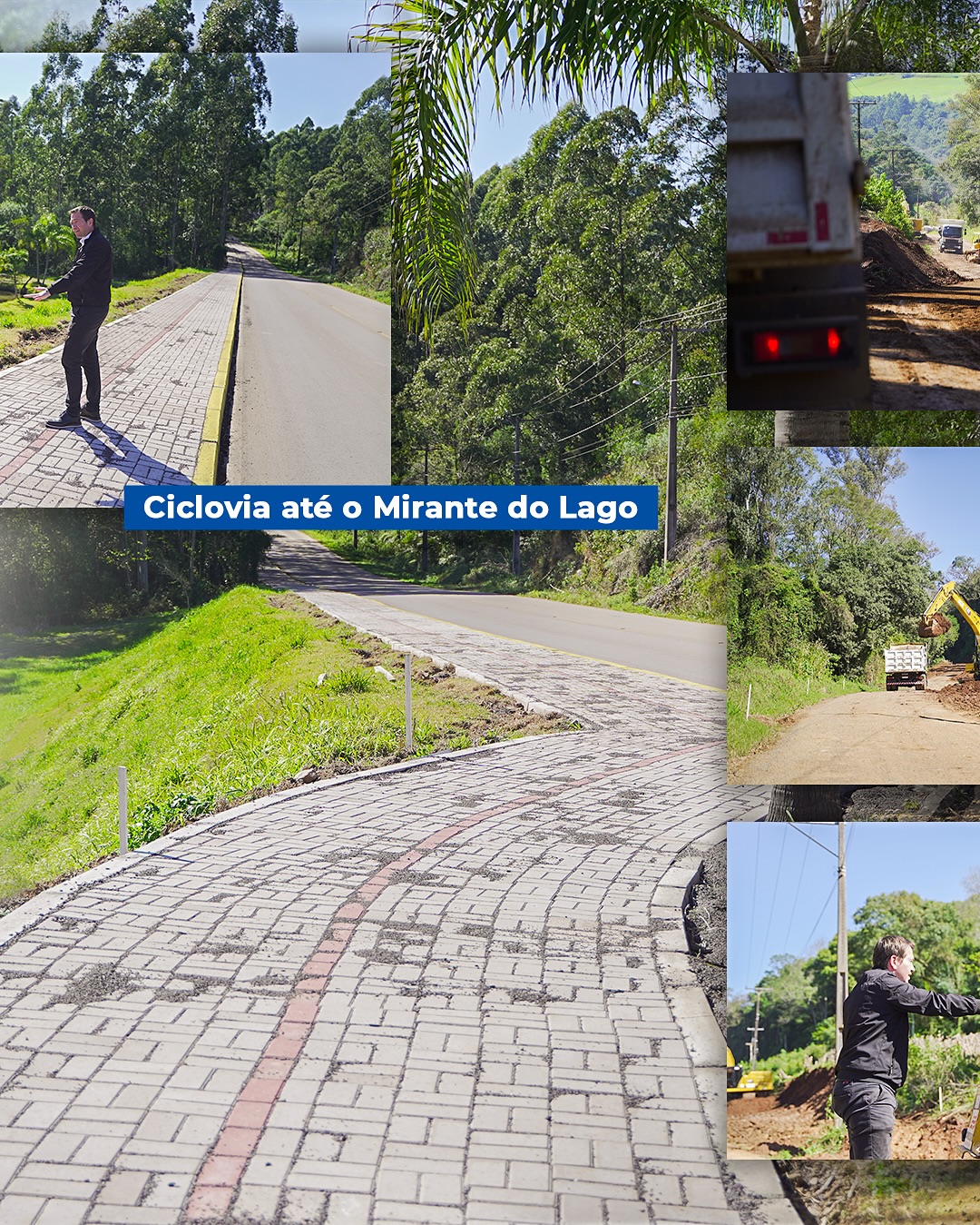 Entre os destaques está a construção da ciclovia até o Mirante do Lago, que garantirá mais segurança e lazer para quem pedala ou caminha pela região. Outro avanço é o asfalto na Linha Rodrigues da Rosa, trazendo conforto e praticidade para moradores e motoristas que utilizam diariamente a via.