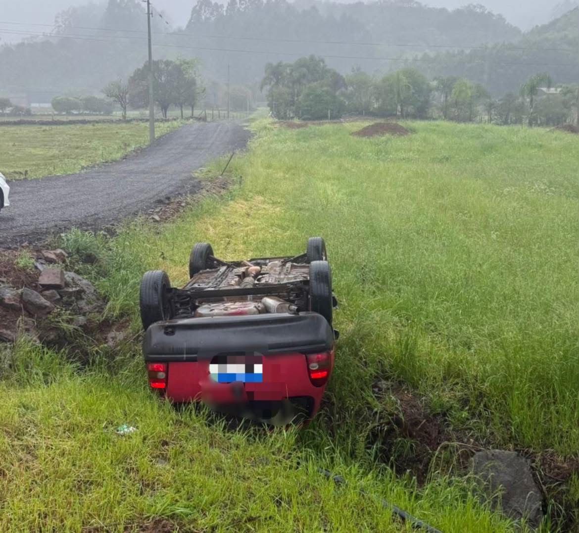 Um capotamento foi registrado na manhã desta sexta-feira 05/09, em Barão Velho (Barão), e envolveu um veículo, Corsa placas de Barão.