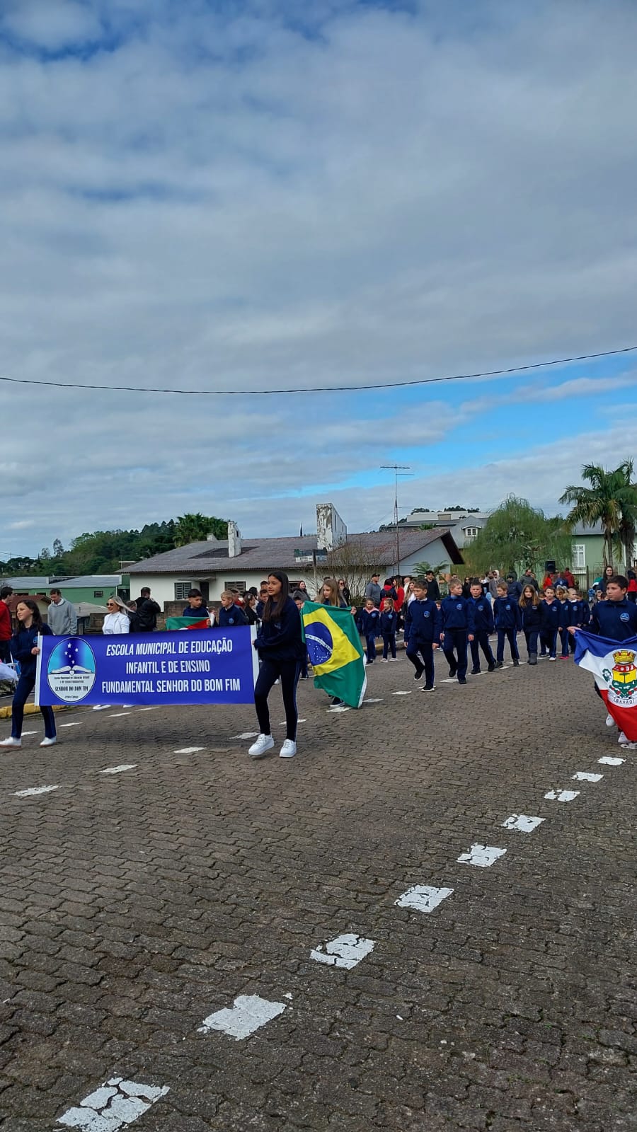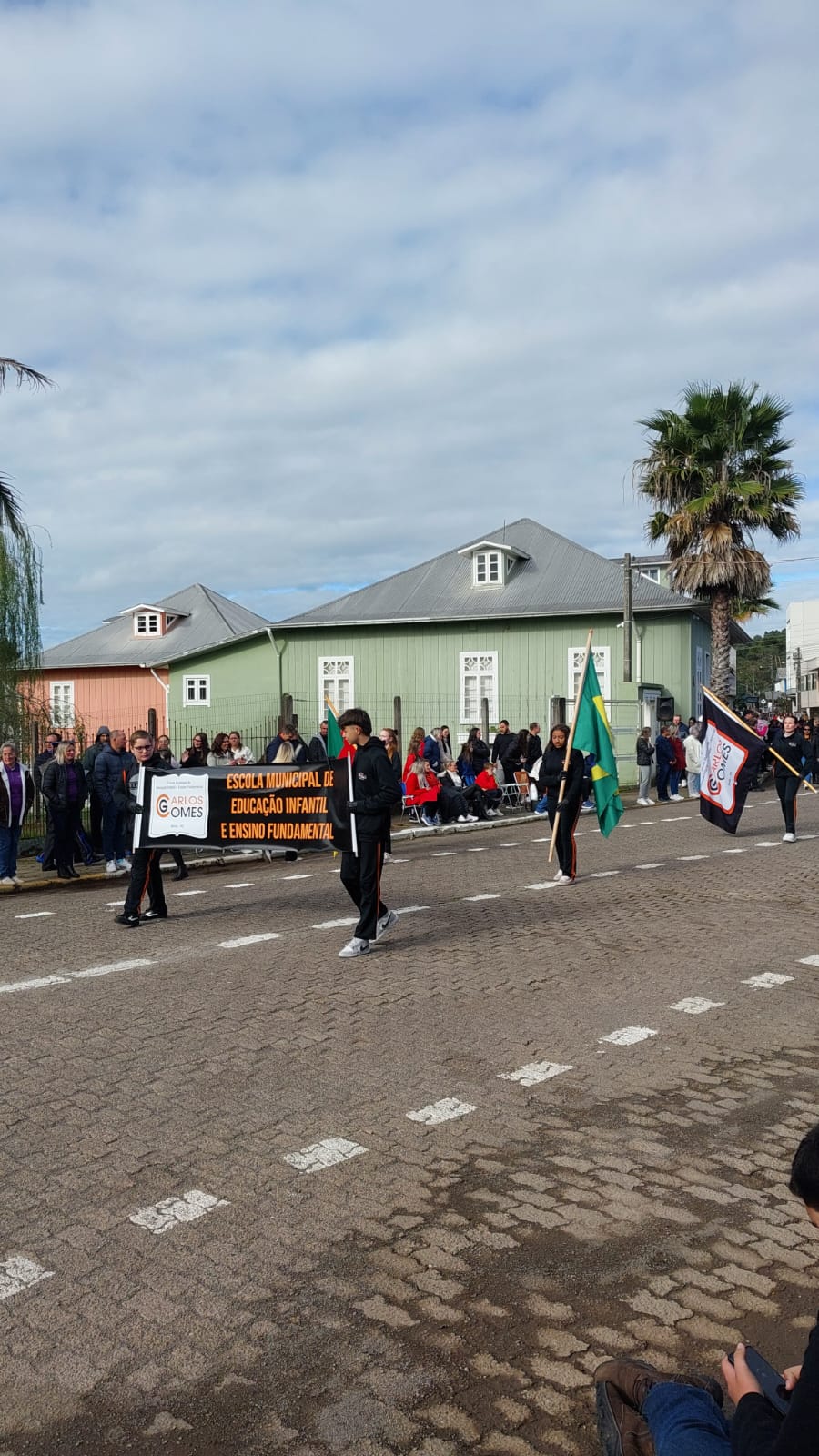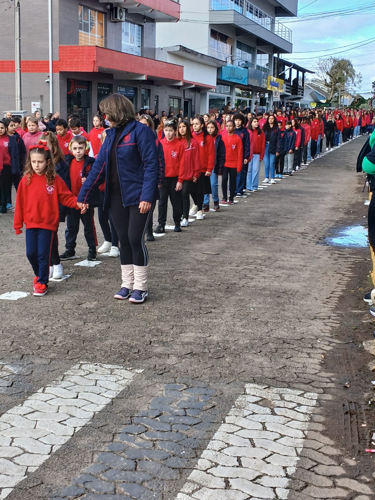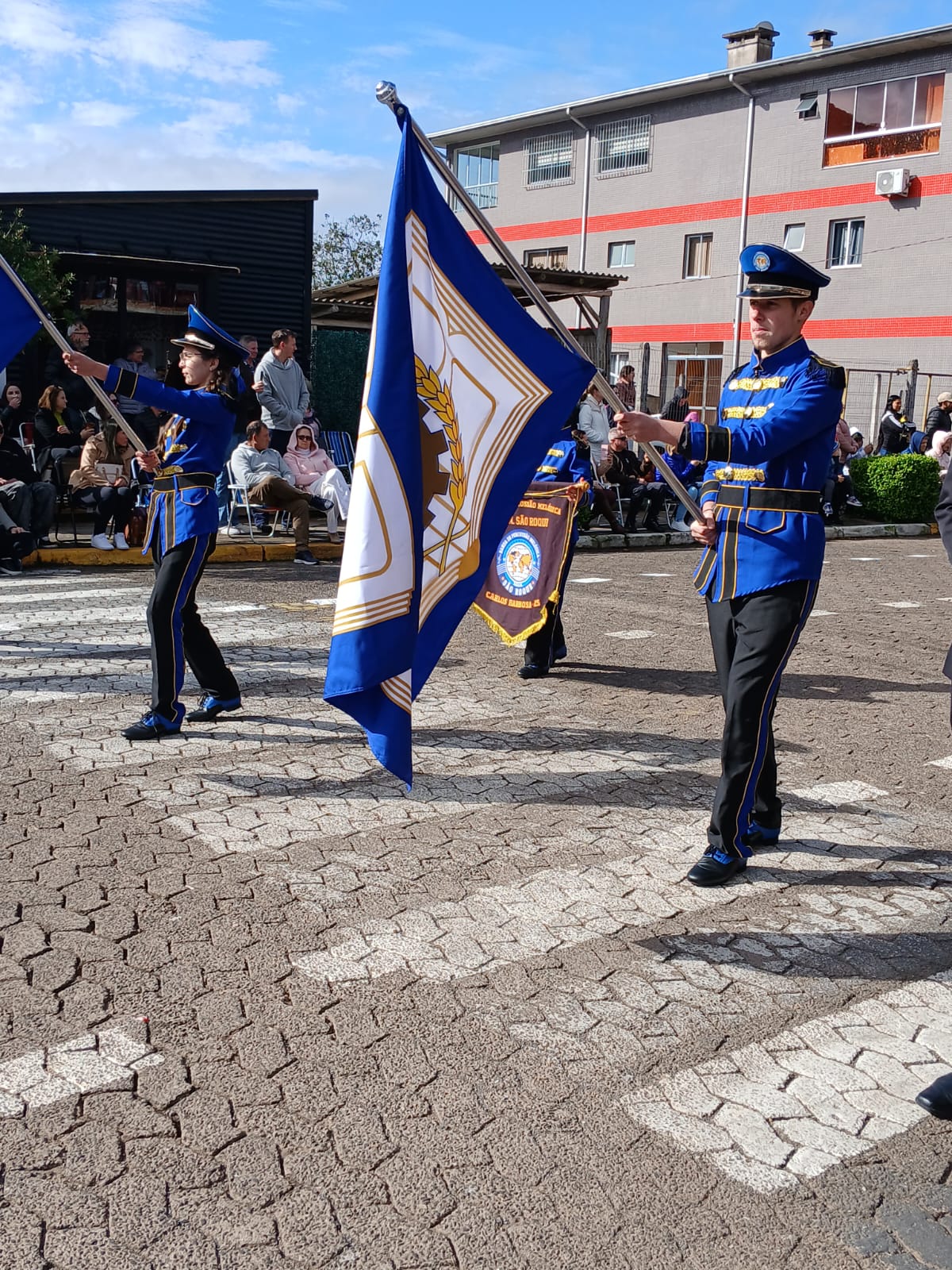 Na sequência, desfilaram as escolas José Emílio Poersch, Nicolau Bourscheid e Cônego Caspary, além da APAE e do Centro Municipal de Oficinas Prof. Renati. O desfile seguiu com a Orquestra Municipal, o Grupo Instrumental, o Coral Infanto-Juvenil e a Escola São Roque, acompanhados de entidades como Emater, Talian e Studio Inovare.