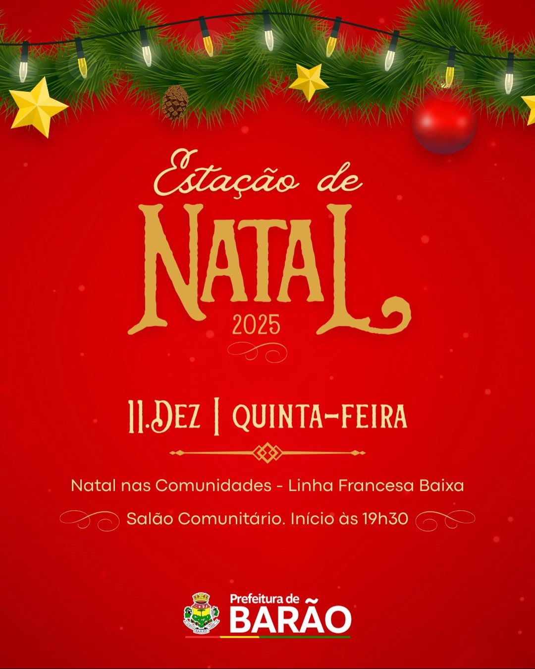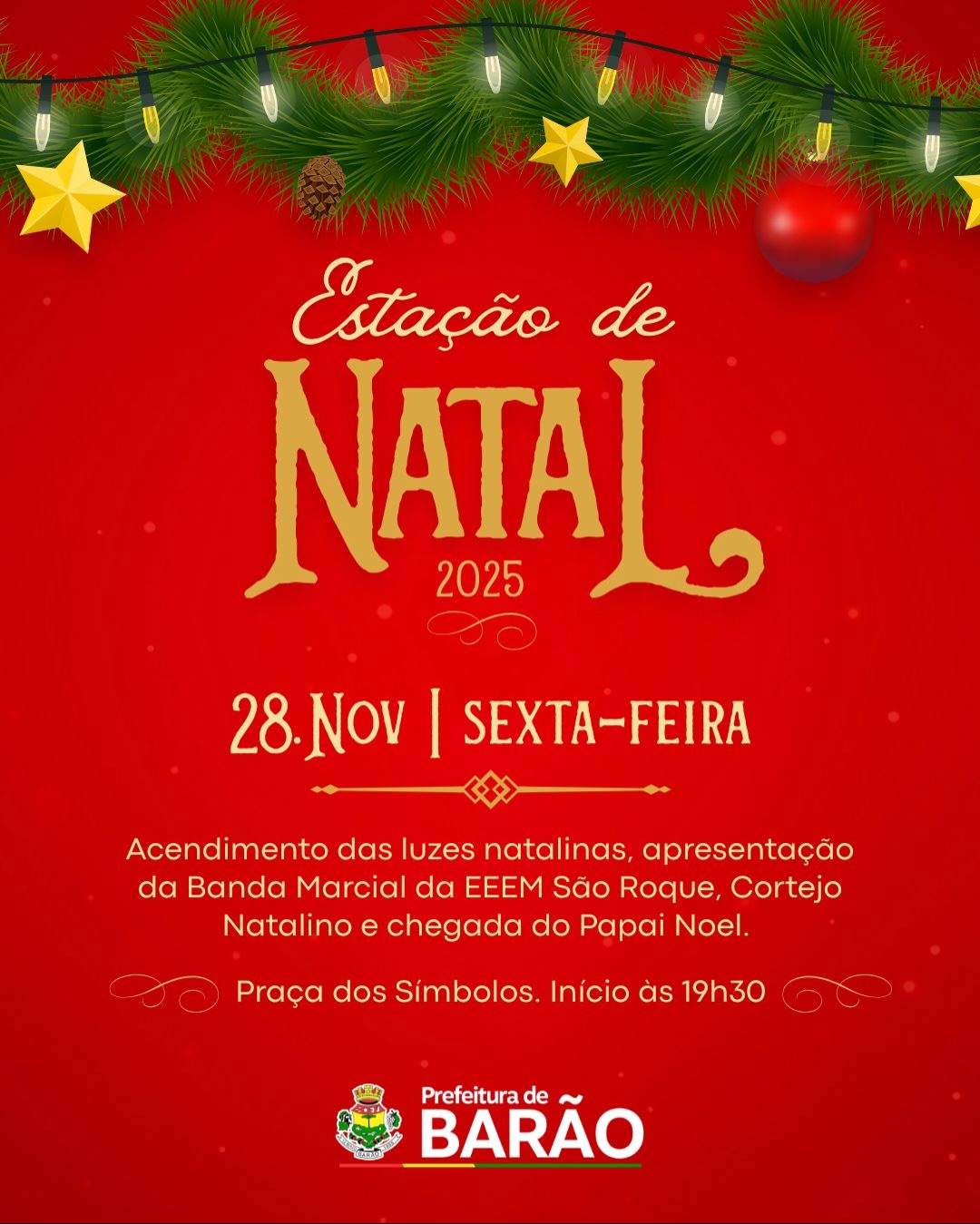 A magia do Natal já tomou conta de Barão! A Estação de Natal 2025 teve sua abertura oficial realizada no último dia 28 de novembro, marcando o início de uma programação especial que promete encantar toda a comunidade ao longo do mês de dezembro.
