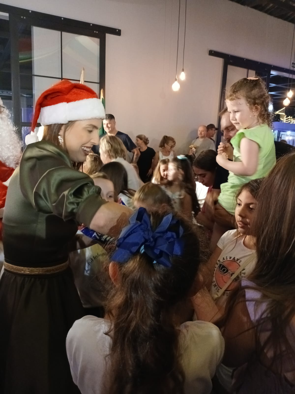 Após as apresentações musicais as crianças chamaram o Papai Noel em coro. A chegada foi recebida com entusiasmo, com o personagem distribuindo balas e levando ainda mais alegria ao público. As soberanas de Barão, rainha e princesas, estiveram presentes neste que foi um dos últimos eventos oficiais da atual corte, despedindo-se da comunidade. As futuras candidatas a soberanas também participaram, atuando como assistentes do Papai Noel na distribuição de balas às crianças.