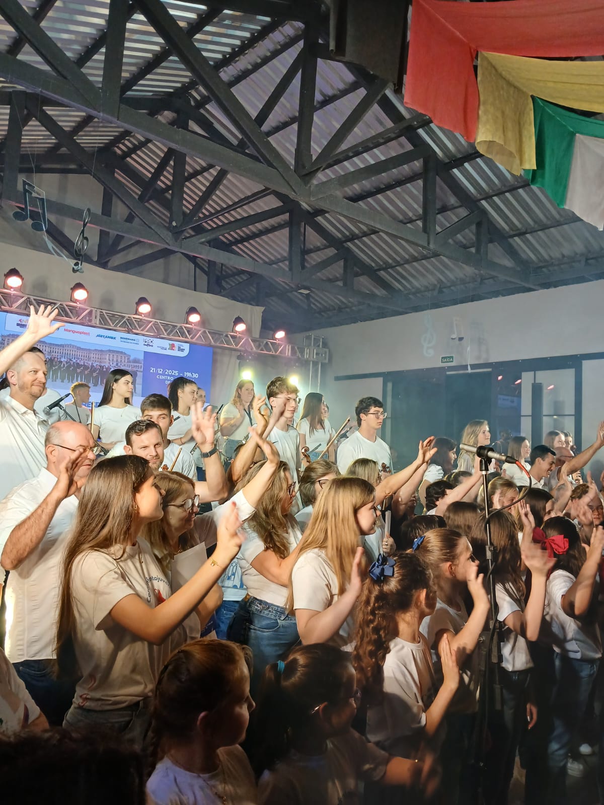 A Estação de Natal 2025 foi realizada na noite deste domingo (21), no Centro Cultural de Barão, e transcorreu na mais perfeita ordem, mesmo diante da chuva e de uma queda de energia elétrica registrada na região em razão de um acidente. O público compareceu, acompanhou toda a programação e prestigiou um dos principais eventos do calendário cultural do município.