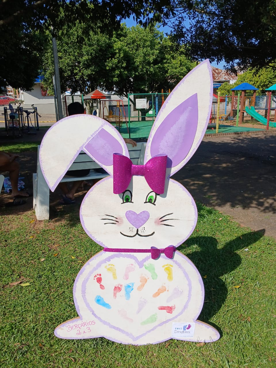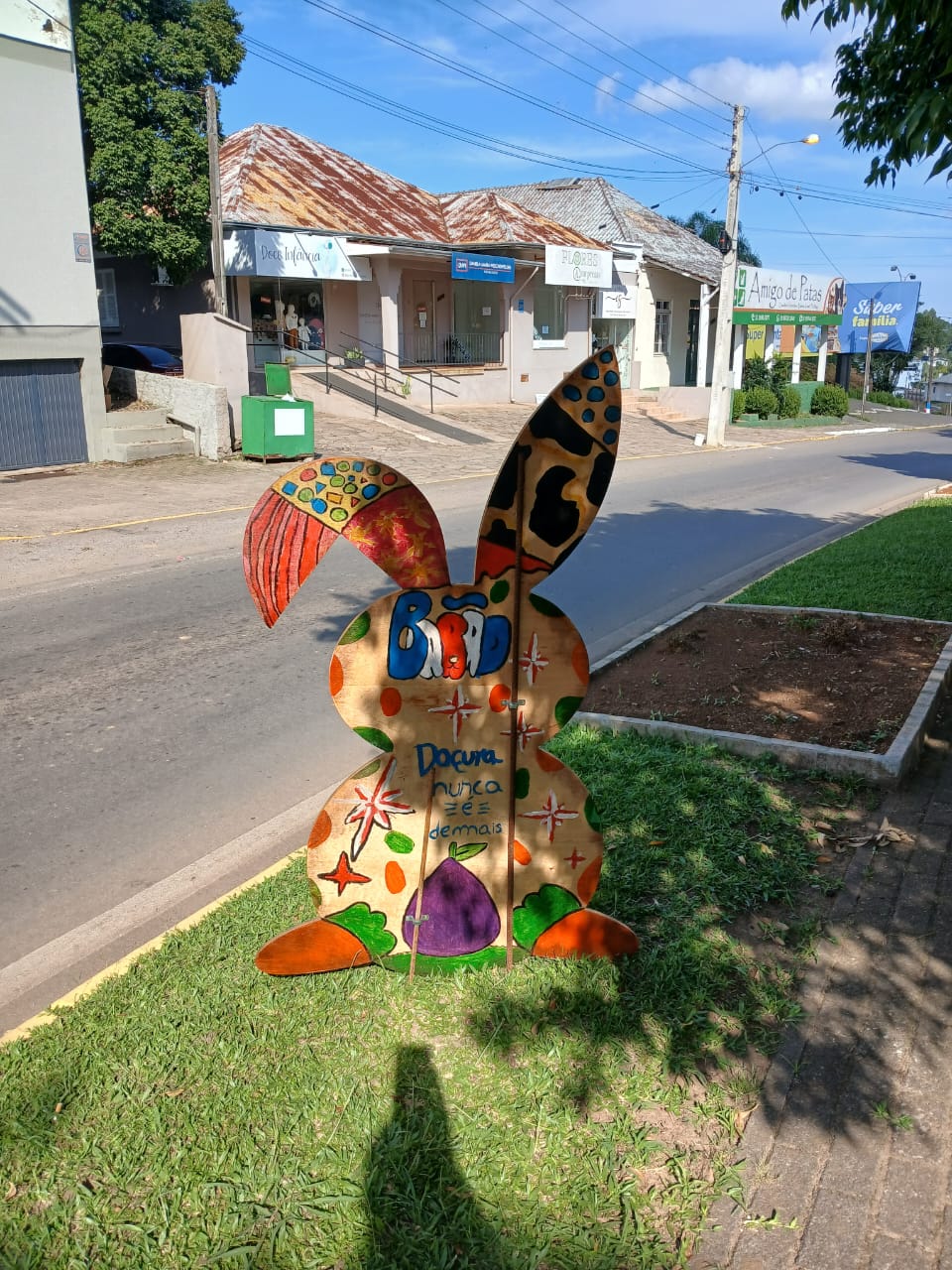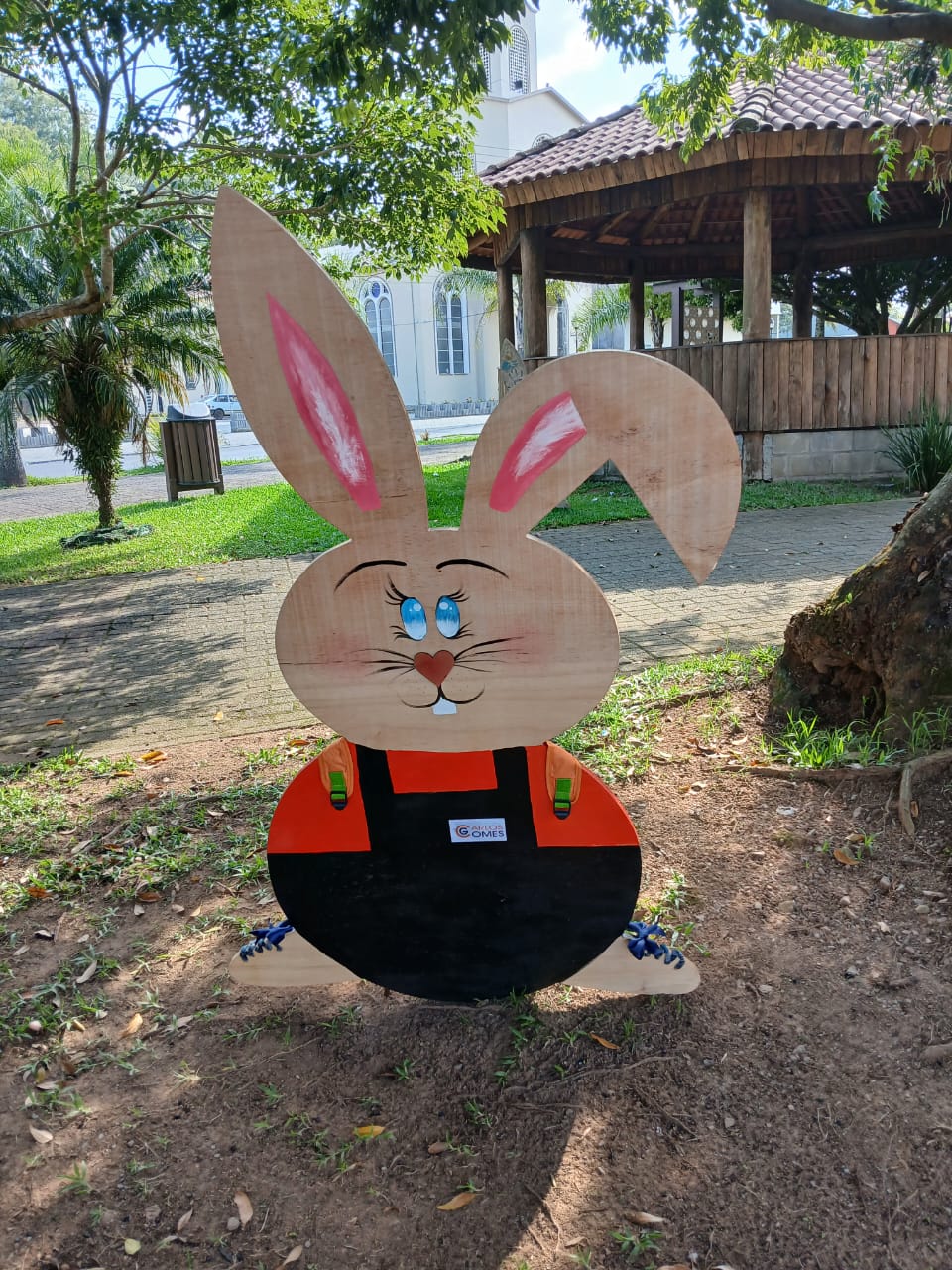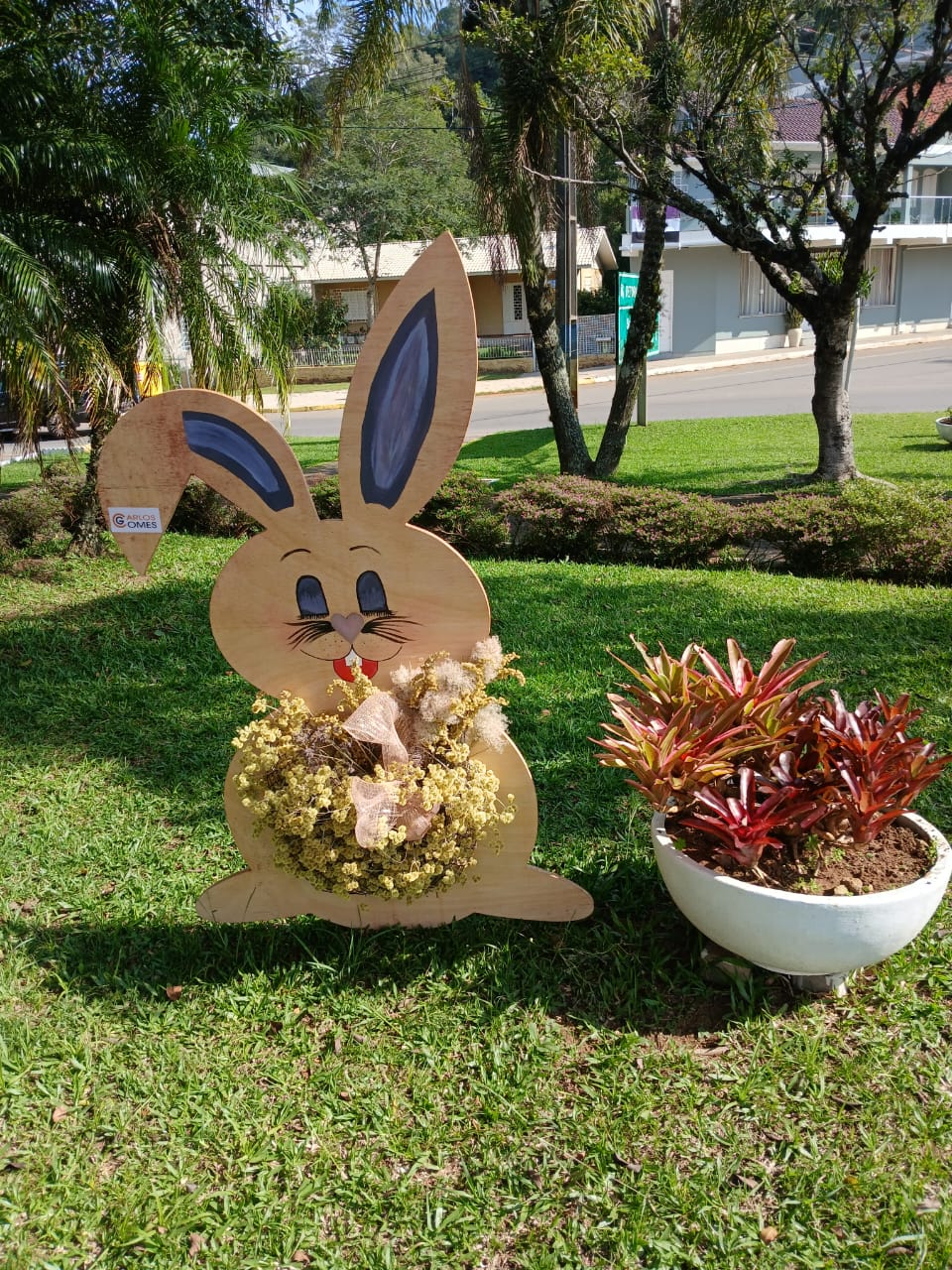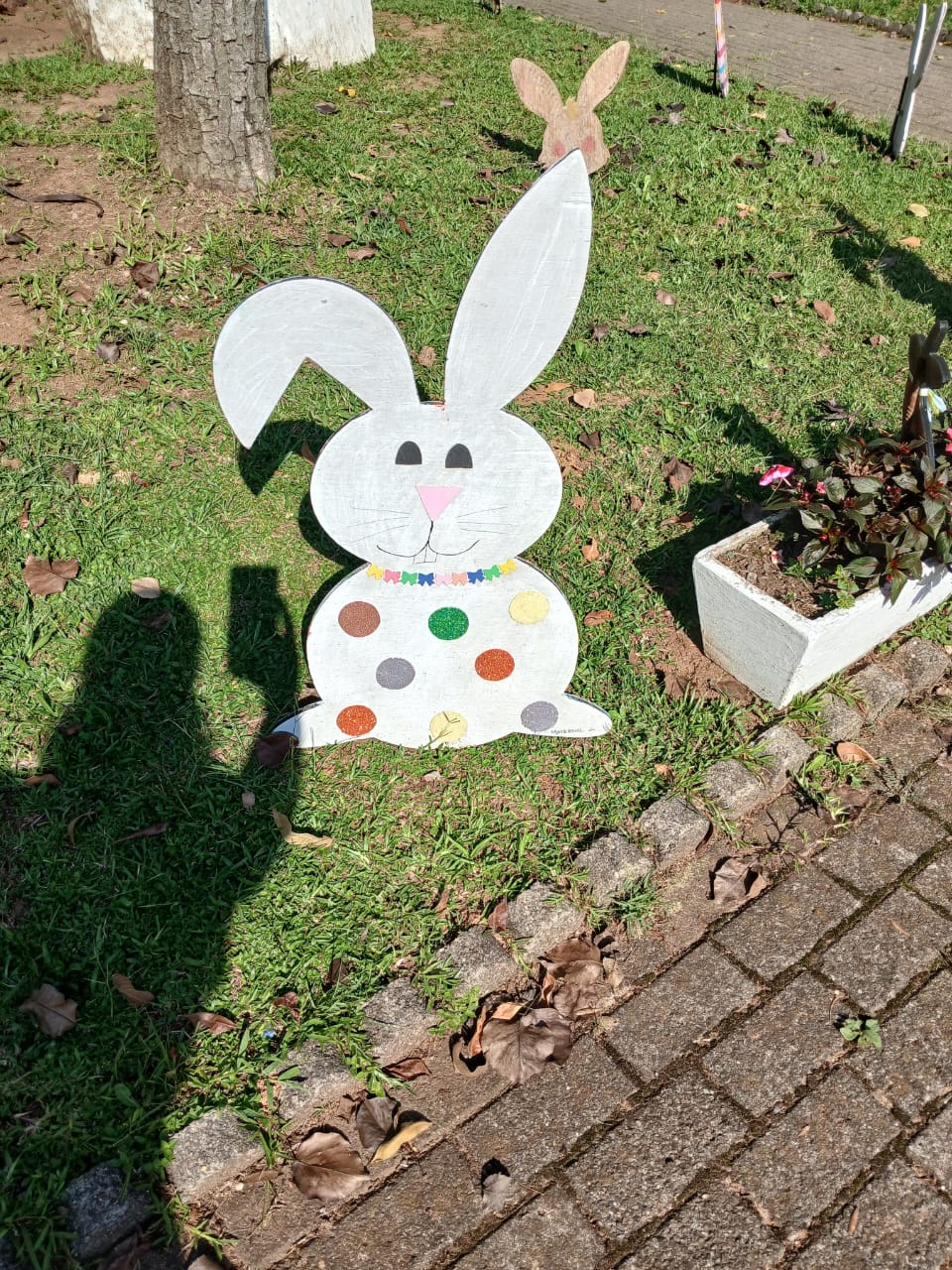 Ao mesmo tempo, a cidade apresenta um cenário que chama atenção de quem passa pelas praças Central e dos Símbolos. A decoração de Páscoa, construída pelas escolas municipais, ocupa os espaços públicos com coelhos, ovos e elementos temáticos produzidos a partir de diferentes materiais. Cada peça revela o envolvimento das crianças e o trabalho conjunto com as equipes diretivas, em uma composição que valoriza a criatividade e o cuidado estético.