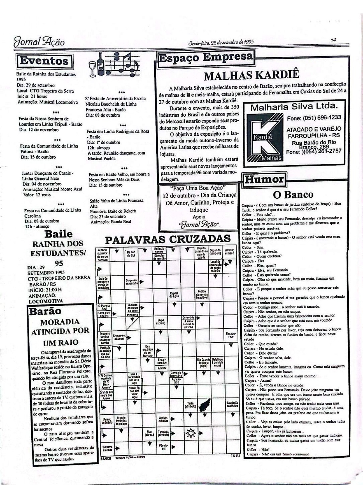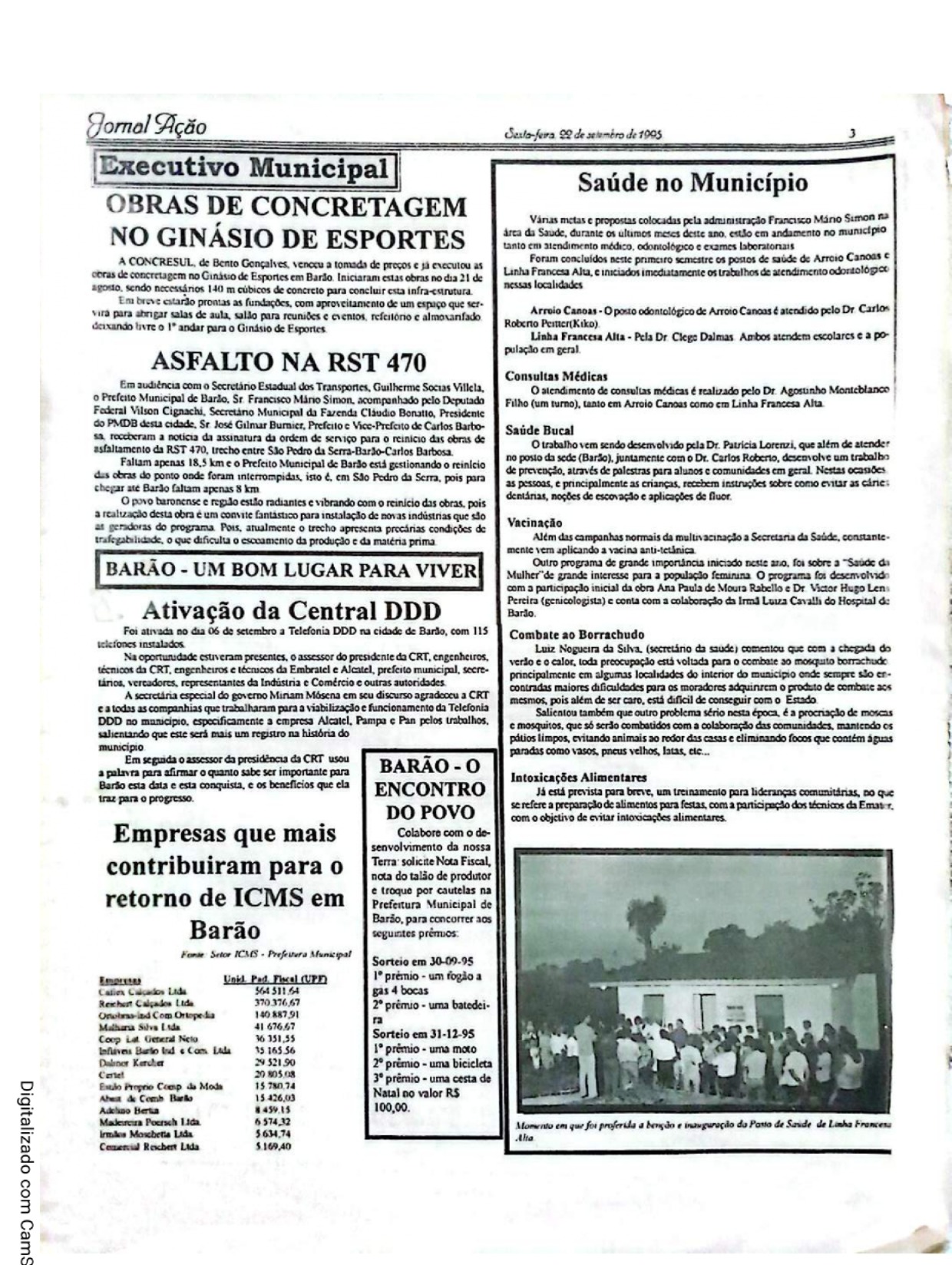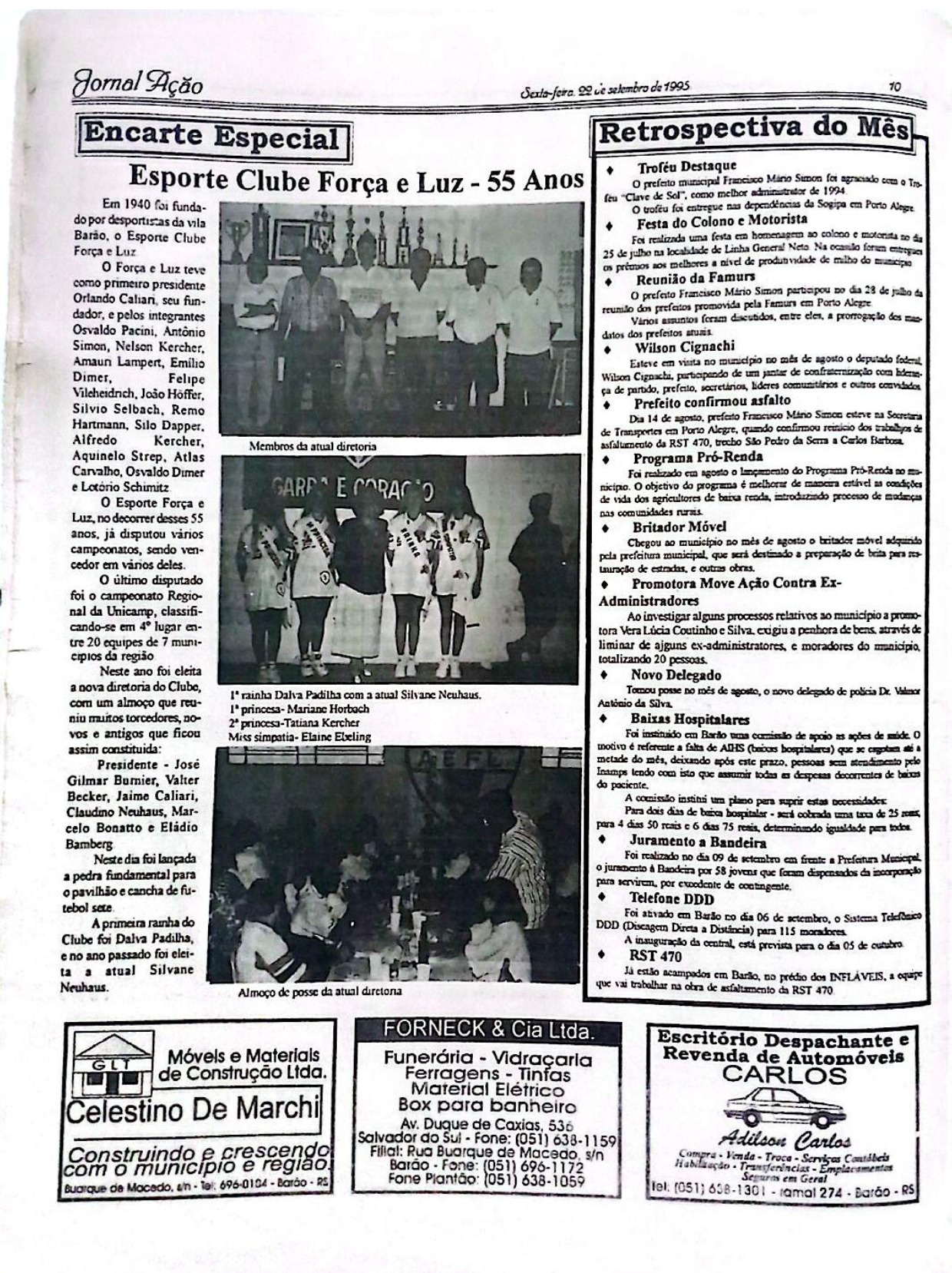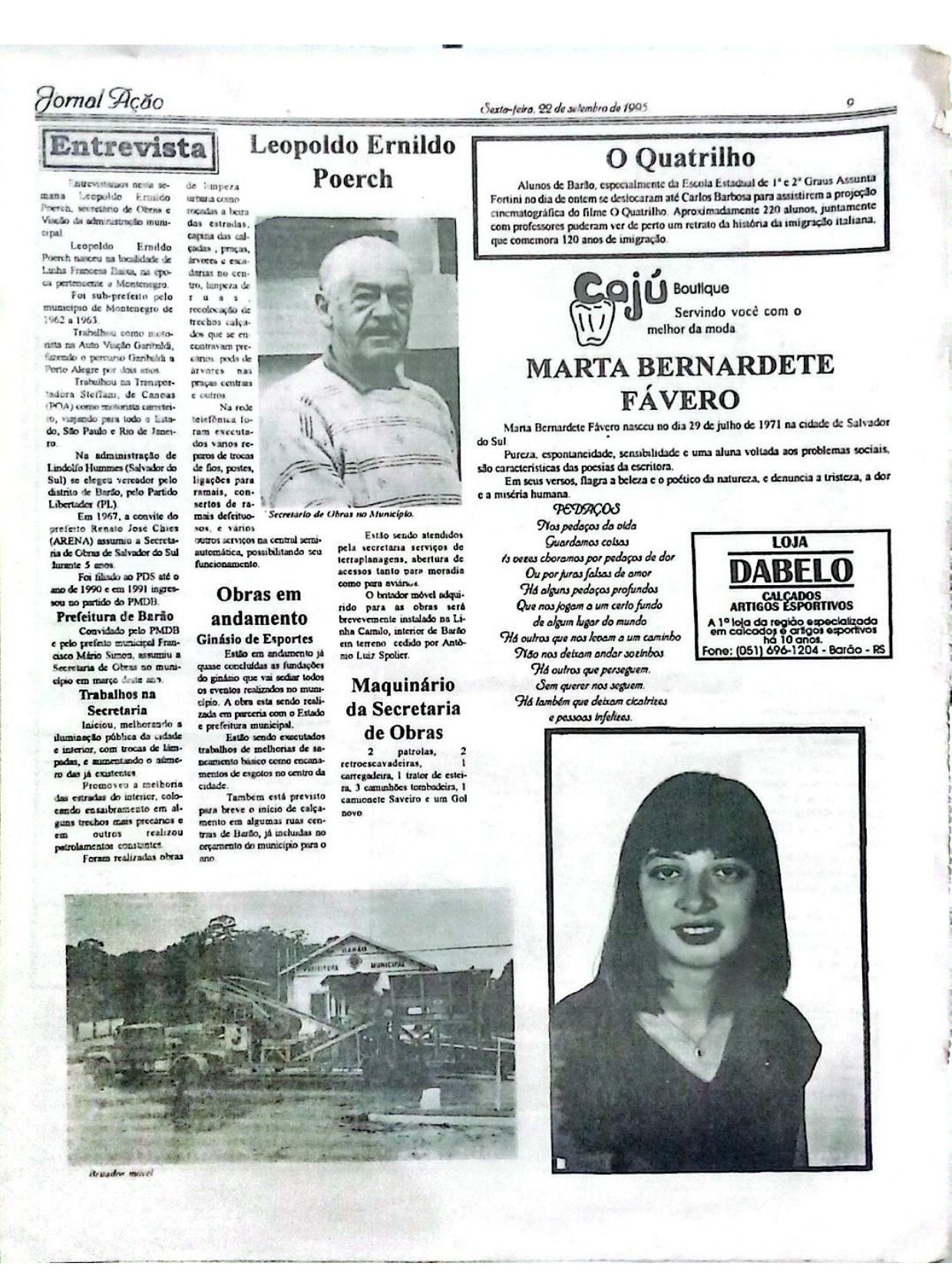 Ao revisitar essas páginas hoje se percebe que há uma coerência que se mantém. As primeiras edições já traziam o olhar voltado para a vida local, reunindo temas como infraestrutura, saúde, eventos comunitários e relatos que davam forma ao dia a dia de Barão. O jornal, além de informar, organizava o presente e o transformava em memória. Rostos conhecidos, histórias próximas e situações compartilhadas reforçavam uma característica que se consolidou ao longo dos anos: o jornal como espelho da comunidade.