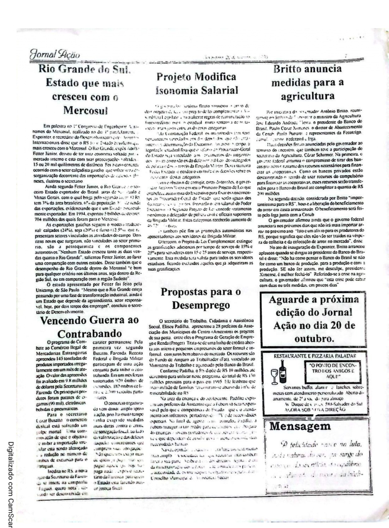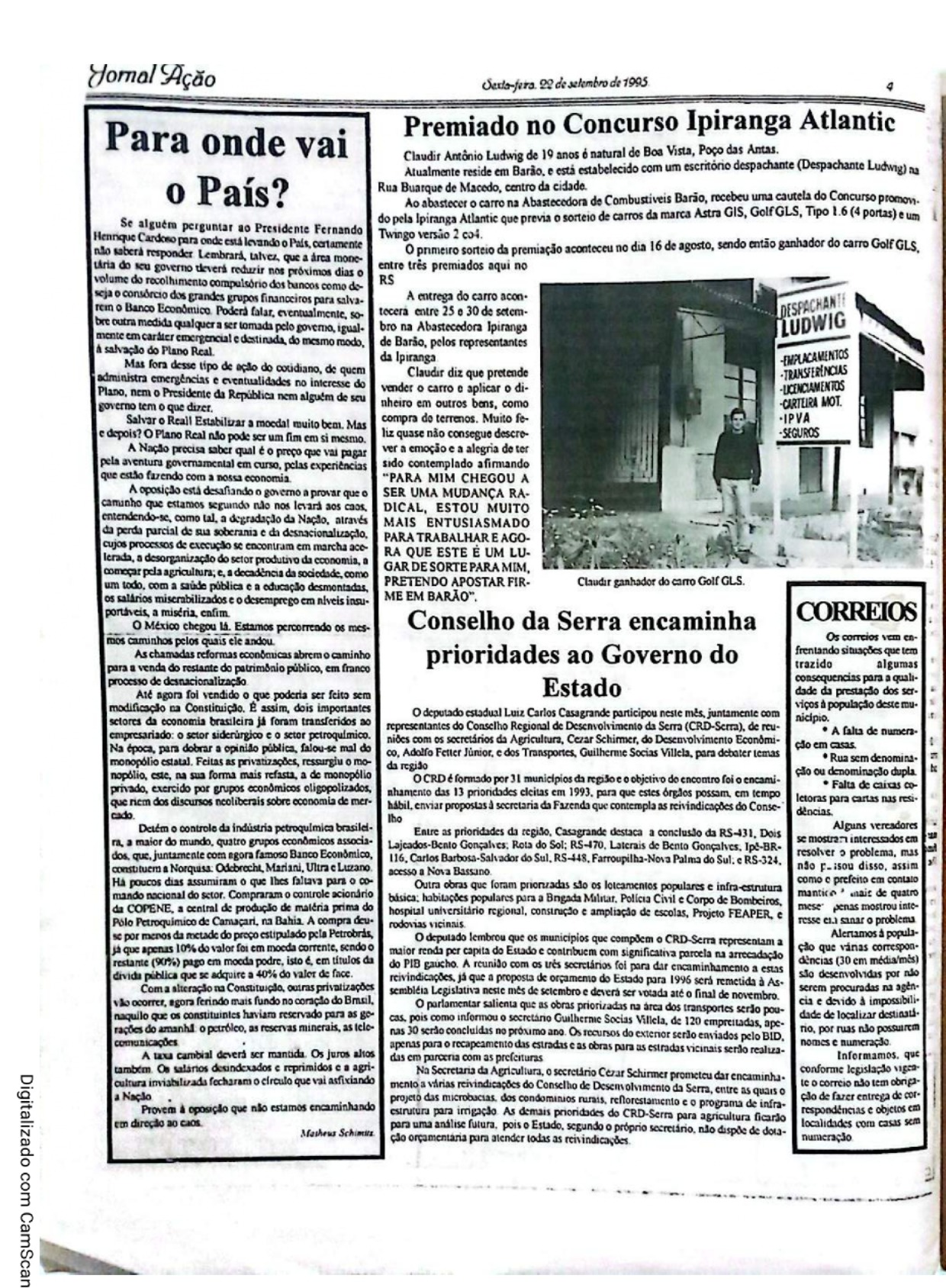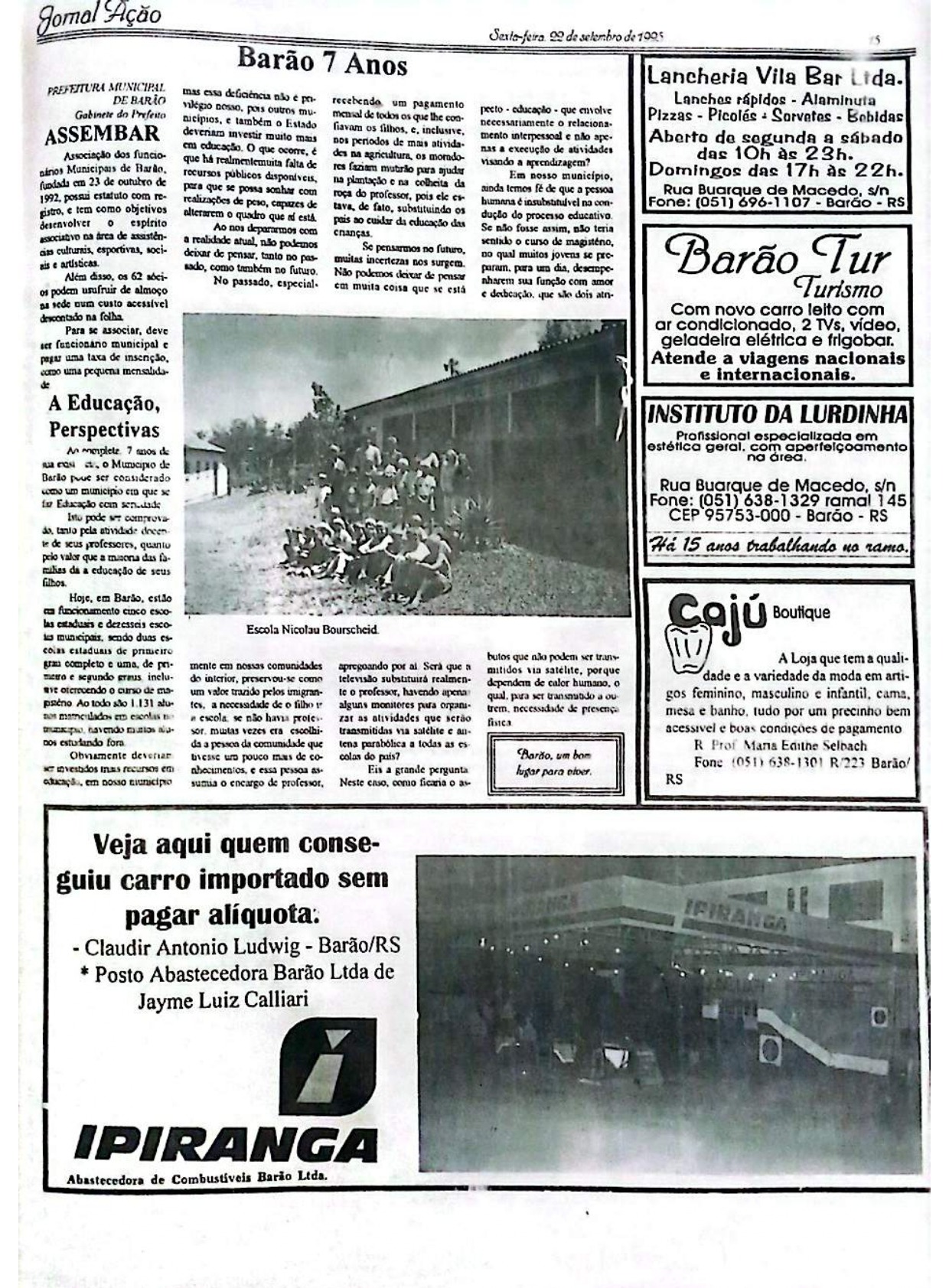 Há 31 anos, o Jornal Ação começava a circular em Barão com uma definição clara do que pretendia ser: o registro da história de um lugar apresentado, já naquele momento, como um bom lugar para se viver. A primeira edição, lançada em 1995, não apenas marcou o início de um novo veículo de comunicação, mas estabeleceu um compromisso editorial que atravessaria o tempo. Na capa, a locomotiva e a chamada “A Marca da História” sintetizavam esse propósito de forma direta, apontando para um jornal atento ao cotidiano, às transformações e, sobretudo, às pessoas que constroem a cidade.