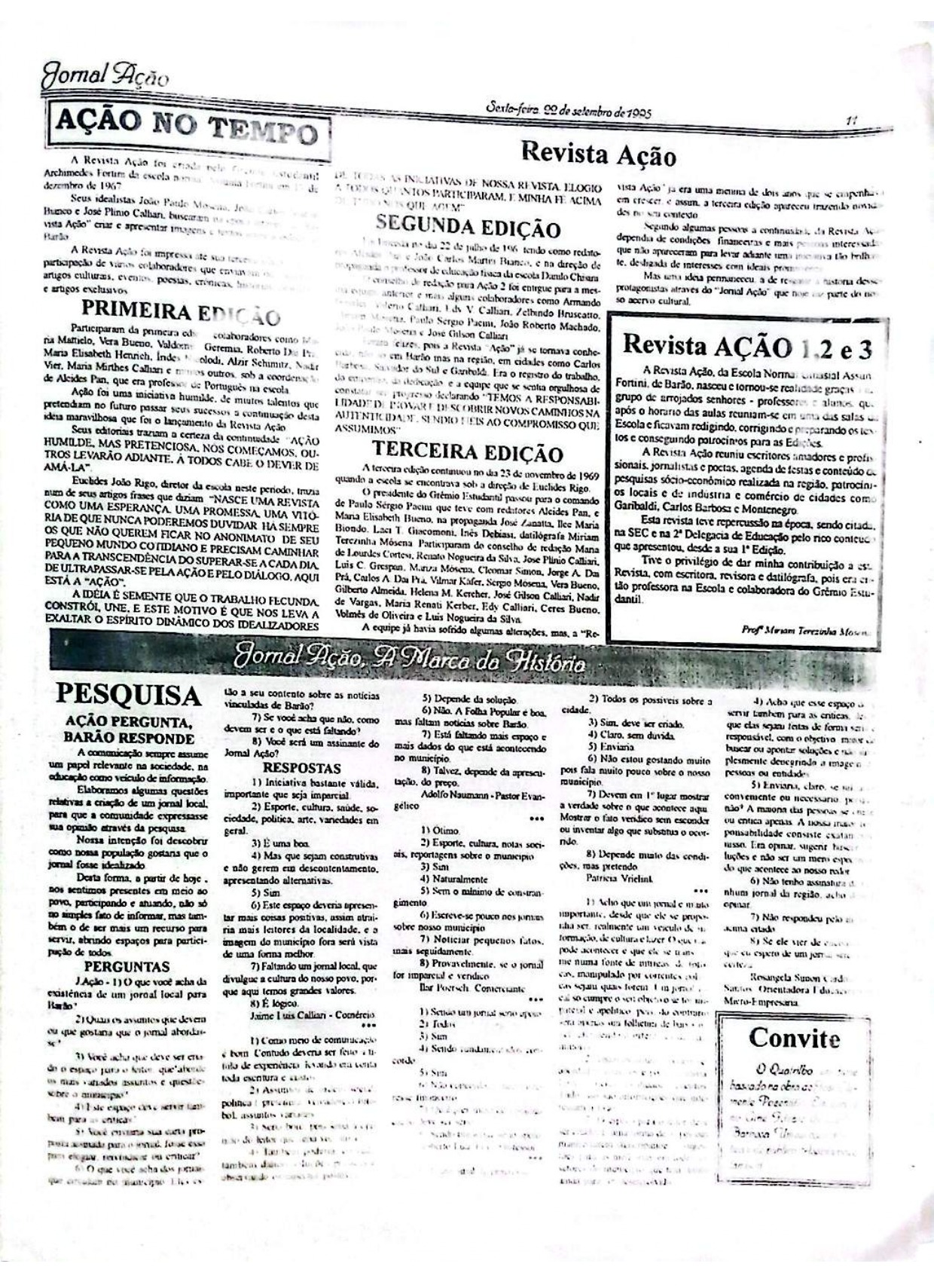 Ao percorrer as páginas da primeira edição, é comum reconhecer pessoas, histórias e momentos que ainda fazem parte da memória da comunidade. Esse reconhecimento não ficou no passado. Ele continua acontecendo diariamente, agora no ambiente digital, onde o jornal mantém sua função de aproximar, registrar e dar sentido ao cotidiano de quem vive em Barão.