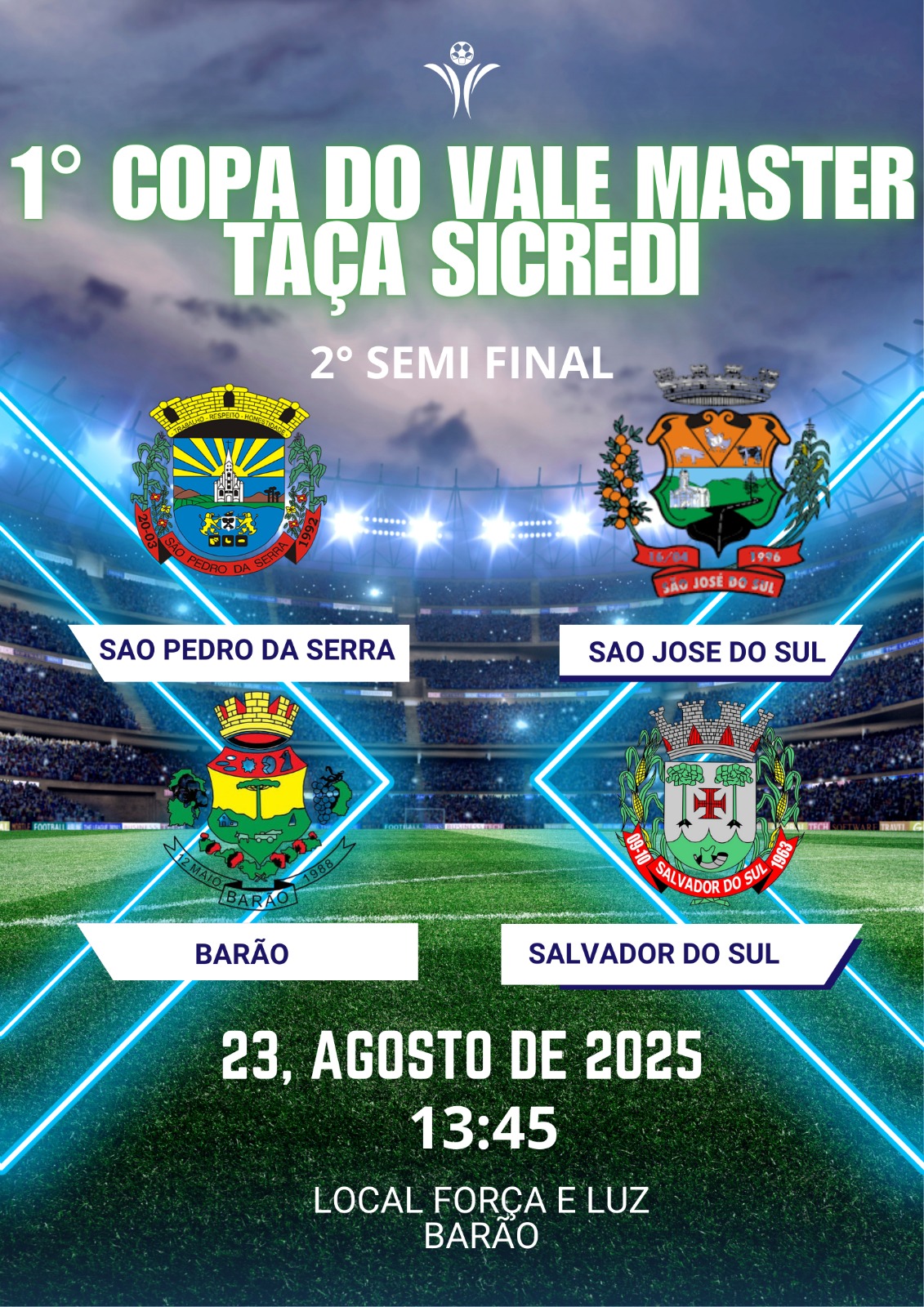 No último sábado, dia 16 de agosto de 2025, o campo do Campestre Alto, em São Pedro da Serra, recebeu os confrontos da 1ª semifinal da Copa do Vale Master – Taça Sicredi.