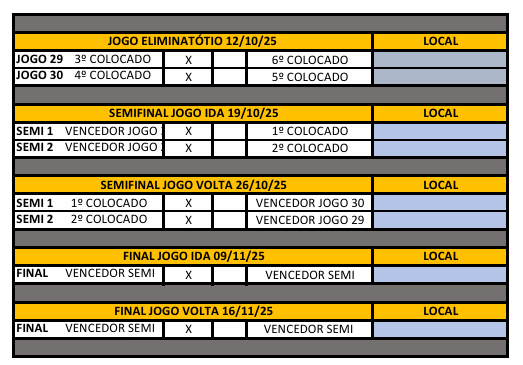 De acordo com a tabela divulgada, a primeira rodada contará com os seguintes confrontos: